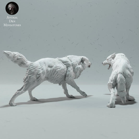 Figurines de faune sauvage : loups arctiques en combat (Réf 01_01_61)